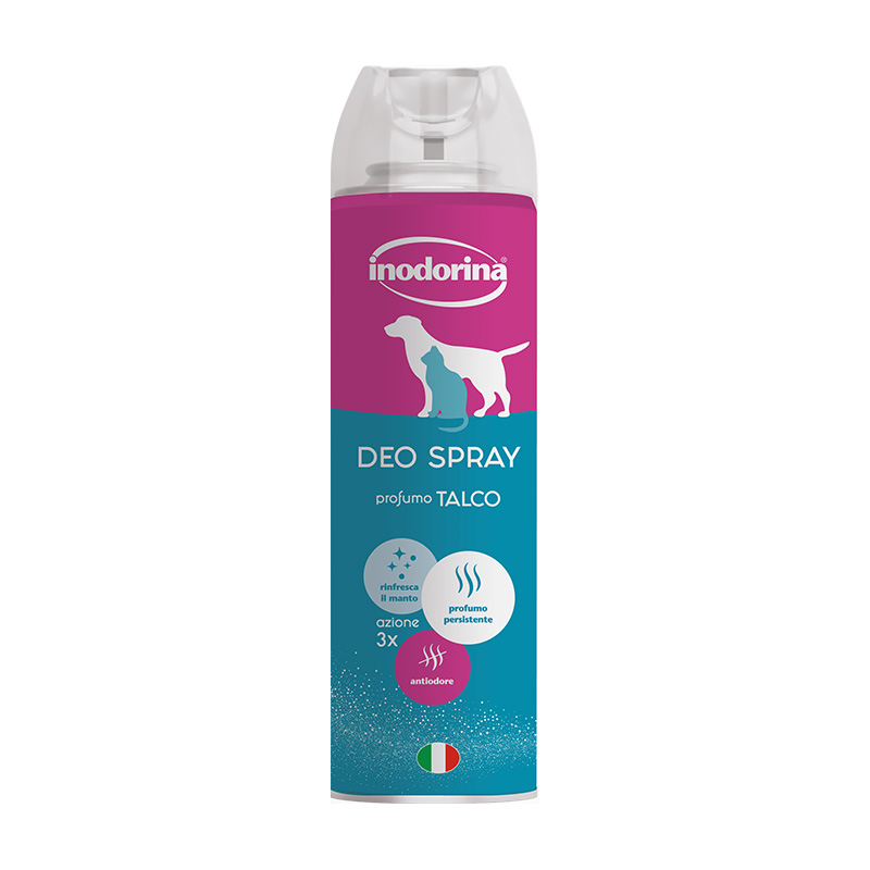 Inodorina Deo Spray idealno je rješenje za osvježenje krzna Vašeg psa. Neutralizira neugodne mirise i dezodorira te čini krzno sjajnim.
