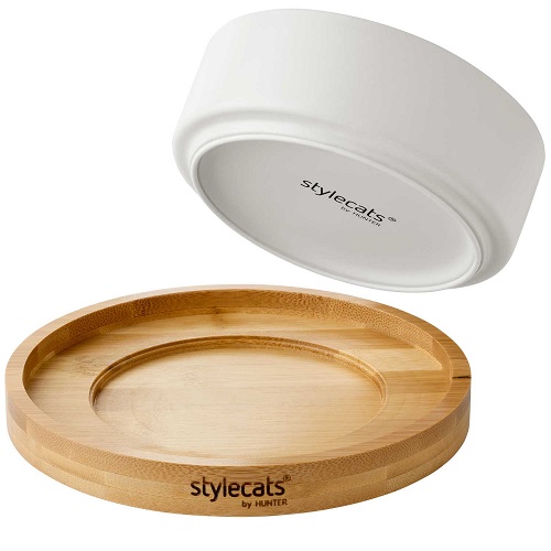 Posuda za mačke TANARO impresionira prekrasnom kombinacijom čvrste keramike i izdržljivog bambusovog drveta.