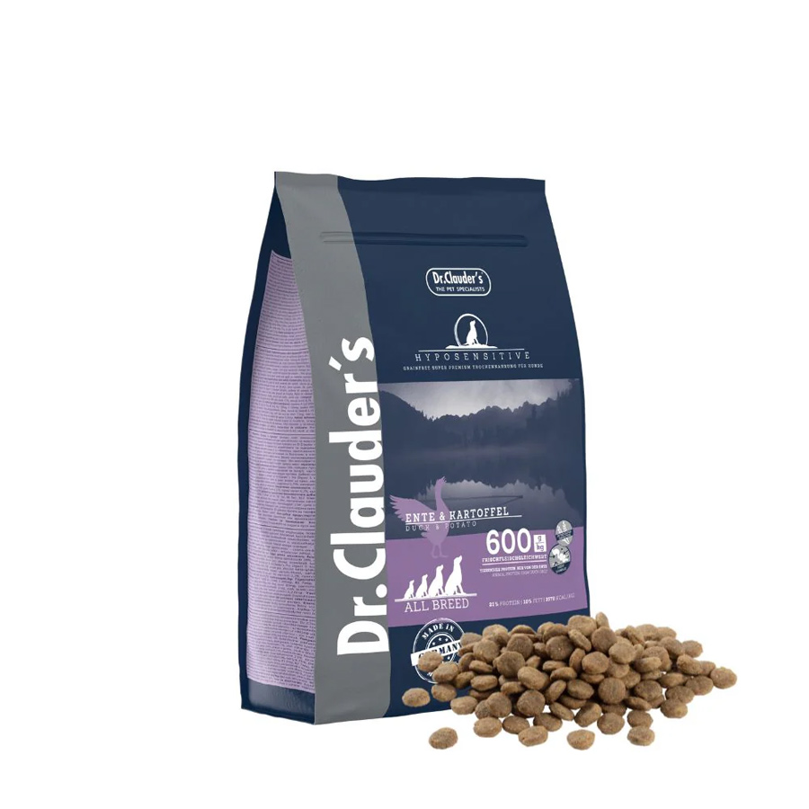 Sastav: krompirovo brašno (50%), dehidrirani proteini pačjeg mesa (20%), krumpirovi proteini, repina pulpa (smanjeni šećer), pileća mast, hidrolizirani proteini, laneno sjeme, kvasac (osušeni, 0,05% glukan), jabuka (osušena), 1%) riblje ulje, cikorija u prahu (1%) Dr.Clauder's Pro Digest 5 Complex (papaja u prahu, fruktooligosaharidi, sok od brusnice, ananas u prahu, beta glukan kvasca, konopljino brašno, spirulina u prahu) 0,75%, kalcijev karbonat, monokalcijev fosfat, kvasac (osušeni 0,05% glukana).