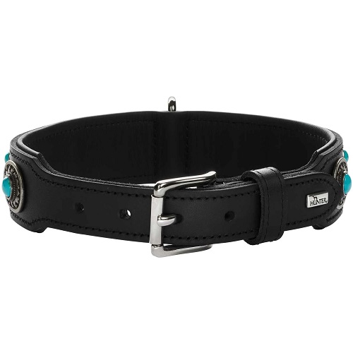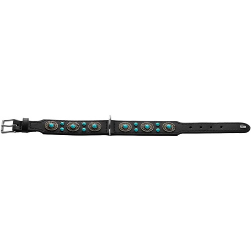 Svi koji su fanovi Karla Maya, Winnetoua i Old Shatterhanda sigurno će obožavati ogrlicu SIOUX, jer ona spaja najbolje iz njemačke zanatske izrade i prelijepih ukrasa s kulturom američkih Indijanaca. Ogrlica SIOUX je „Made in Germany“, što znači da je izrađena u Njemačkoj od strane stručnjaka iz HUNTER-a s velikim znanjem i pažnjom. Na ovu ogrlicu od obojenog i nauljenog mekog goveđeg kože dodaju se srebrni metalni ukrasi u stilu američkih Indijanaca i tirkizni ukrasni kamenčići, koji se savršeno ističu na crnoj koži. Dizajn ogrlice je vrlo suzdržan kako bi ukrasi i prelijepa koža došli do izražaja. Mekana koža punog zrna posebno je štavljena, obojena i nauljena. Zbog toga je vrlo izdržljiva, a istovremeno ugodna i savitljiva na dodir. Zajedno sa pažljivom izradom, to osigurava da je ogrlica SIOUX udobna za nošenje – osjetljiva koža oko vrata vašeg psa tako je zaštićena od žuljanja i trljanja. Napomena: Naša koža se proizvodi na što nježniji način. Kod obojene kože može doći do blagog ispiranja boje.